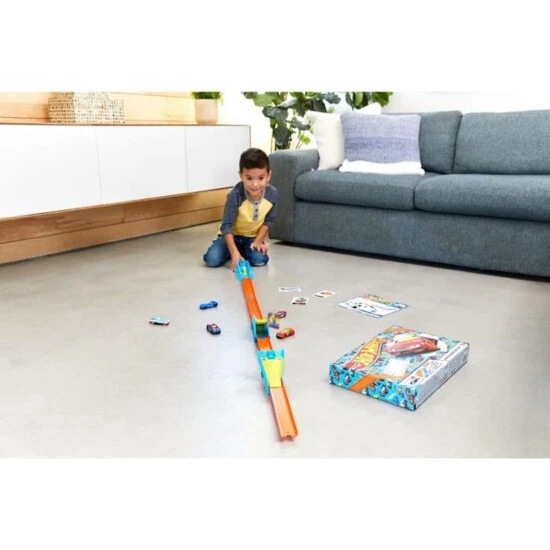 Die Hot Wheels HW Celebration Box ist das ultimative Geschenkset mit allem, was Kinder brauchen, um ein episches Hot Wheels-Abenteuer zu erleben! Die Schachtel enthält 4 Teile der kultigen orangefarbenen Hot Wheels-Schiene und Verbindungsstücke sowie eine 4-Gang-Abschussvorrichtung, eine Landebahn und eine Sprungschanze, mit denen junge Baumeister ihre eigene Strecke gestalten können. Das Set schärft die Problemlösungskompetenz der Kinder und regt ihre Fantasie an. Diese tolle Geschenkpackung enthält 6 Hot Wheels Basic Autos und ist ideal für Kinder ab 3 Jahren. Verschiedene Farben und Dekorationen möglich.