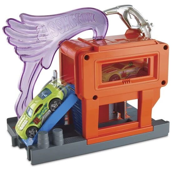 – Alle „Hot Wheels City“-Sets sind miteinander kompatibel und können mit orangen Trackteilen verbunden werden– so wird die Spielwelt noch größer!