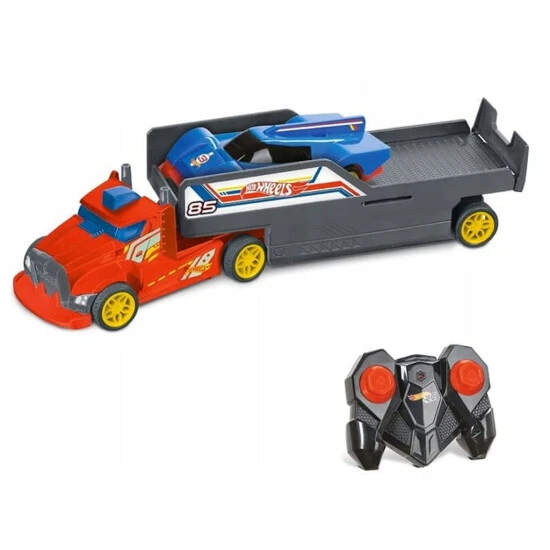 - Bisarca extraíble Este mando a distancia tiene un semiremolque gracias al cual el niño puede jugar guiando el camión y al mismo tiempo utilizarlo para transportar o guardar un precioso coche Hot Wheels, incluido en la caja