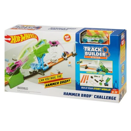 Hot Wheels Stunt-Action mit dem Hot Wheels Track Builder Challenge Hammer Drop