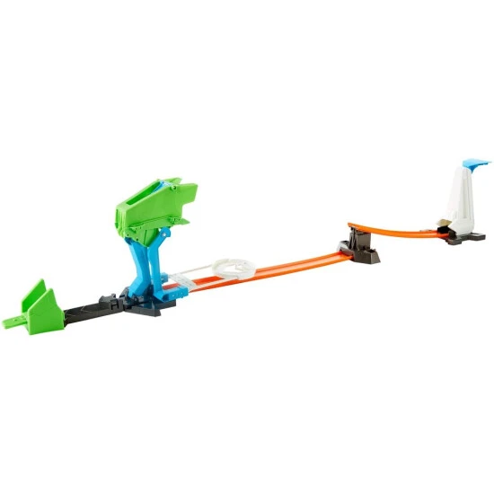 Sobald die Siegesfahne angehoben wird, gibt es eine neue Gelegenheit, das Fahrzeug unter der Fahne wieder zum Hammer springen zu lassen! Die Fahne kann sich sogar hoch- und hinunter bewegen, um es dadurch noch schwieriger zu machen und eine neues Level an Herausforderung zu schaffen. Lässt sich mit anderen Sets oder Teilen aus der Track Builder-Welt verbinden. Das Set enthält Taschen um die Fantasie anzuregen und aus den Bausteinen alles aufzubauen, was die Stunts noch aufregender macht. Ein Hot Wheels-Fahrzeug enthalten.