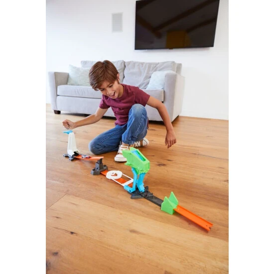 Mit diesem Spielset von Hot Wheels kann der Spielspaß direkt losgehen. Den Parcours einfach zusammengebaut oder mit zusätzlichen Track Builder Zubehör erweitert und dann kann es auch schon los gehen.