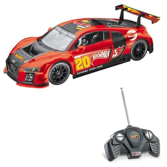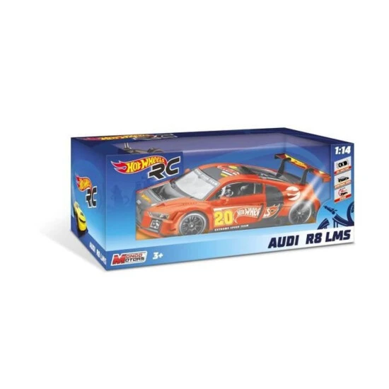 Audi R8 LMS (Le Mans Series) Funk, die Hot Wheels Farben. Maßstab: 1 / 14th. Order „alle Richtungen“: vorne, hinten, links und rechts. Geschwindigkeit: 12 km / h. Frequenz je nach Verfügbarkeit (40 MHz oder 27 MHz). Körper: Hard Body.