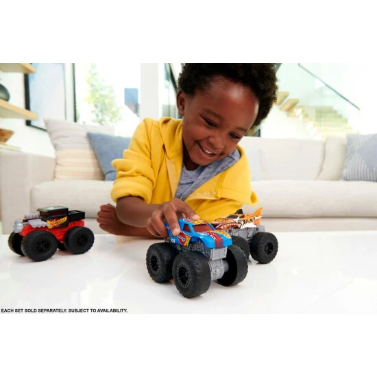 Mit diesem Hot Wheels Monster Truck HWDemoDerby-Truck können Kinder aufregende Crash-Action nachspielen, die durch die Lichter und Geräusche noch besser zum Leben erweckt wird. Dieser Fan-Liebling ist im Maßstab 1:43 gehalten und weist das tolle Design und die riesigen Räder der Hot Wheels Monster Trucks-Marke auf. Auf Knopfdruck sind Motoren- und Crash-Geräusche sowie das HWDemoDerby-Titellied zu hören für noch mehr actiongeladenen Spielspaß. Im Inneren des Führerhauses leuchtet auch ein Licht, das von draußen durch die Fenster sichtbar ist. Kinder können alle Trucks sammeln, um spannende Wettkämpfe nachzuspielen, die durch dazu passende Geräuscheffekte noch realistischer wirken (alle Artikel separat erhältlich). Abweichungen in Farbe und Gestaltung vorbehalten.