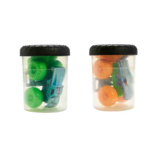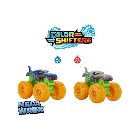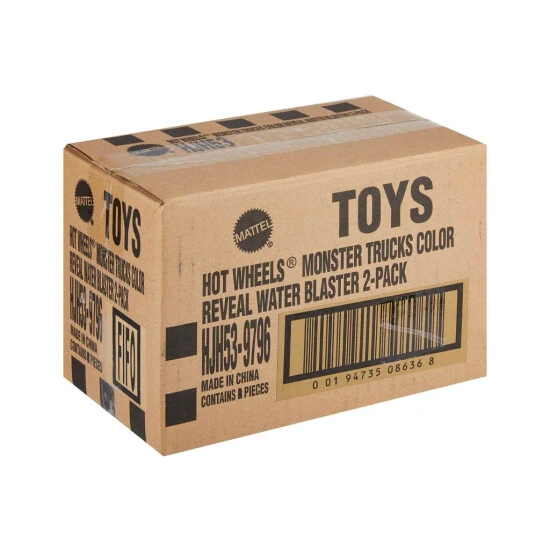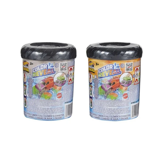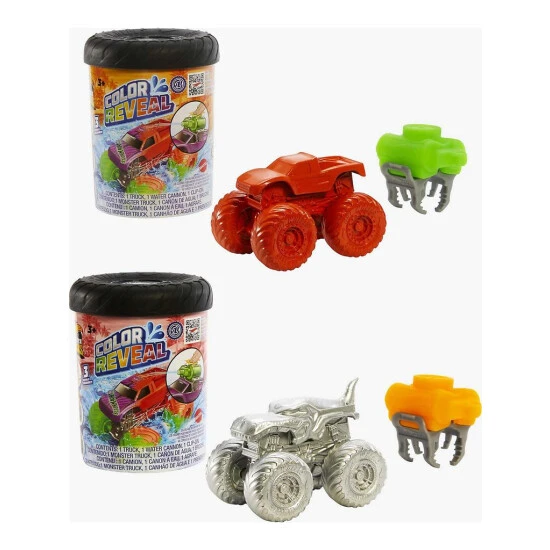 Hot Wheels Monster Trucks Color Reveal Battle Pack mit zwei verschiedenen Monster Trucks: Mega Wrex und Race Ace mit spezieller Color Reveal Beschichtung, die die Farbe wechselt. In jedem Behälter versteckt sich ein Hot Wheels Color Reveal Monster Truck im Maßstab 1:64 mit Wassersprühtank zum Anklipsen. Für den ersten Effekt den Behälter mit Wasser füllen, den Truck ins Wasser tauchen und hin- und herdrehen, bis das Wasser die Farbe wechselt. Den Monster Truck herausnehmen, damit Kinder über sein neues Aussehen staunen können. Den Farbwechseleffekt noch einmal aktivieren? Den Behälter mit kaltem Wasser füllen, den Truck eintauchen und zusehen, wie sich seine Farben auf magische Weise verändern. Warmes Wasser macht den Farbwechseleffekt sofort rückgängig. Noch mehr Spaß haben Kinder mit dem Monster Truck Farbwechsel bei einer Wasserschlacht. Dazu den Wassertank zum Anklipsen mit kaltem oder warmem Wasser befüllen und versuchen, mit jedem Strahl das Aussehen der anderen Trucks zu ändern. Für unendlichen Wechselspaß abwechselnd kaltes und warmes Wasser verwenden. Abweichungen in Farbe und Gestaltung vorbehalten.