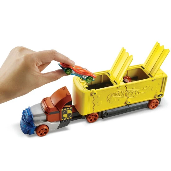 Dieser Hot Wheels® Hauler hat eine krachende und überwältigende Action, die Kinder lieben.