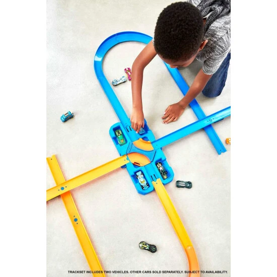 Die Hot Wheels Track Builder Deluxe Stunt Box ist das ultimative Geschenk für Kinder, die sich endlosen Stunt-Spaß mit einem über 4,5 Meter langen Track, Verbindungsstücken und Kurven wünschen! Die Box ist gleichzeitig Teil des Spiels! Sie bietet auf dem Boden Renn-Action auf zwei Spuren und verfügt über eine vierfache Crash-Zone, die direkt in den Deckel eingebaut ist. Der krassen Crash-Action steht nichts mehr im Weg! Wenn die Kinder ihre Stunts ausprobiert haben, können alle Teile einfach in der Box verstaut werden. Das Set macht alleine und mit Freunden Spaß. Dieses Set ist mit anderen Track-Builder-Sets kompatibel und bietet so endlose Spielmöglichkeiten: Durch das Kombinieren mit anderen Sets und Tracks von Hot Wheels Track Builder lassen sich fantastische Stunt-Welten aufbauen und erweitern.