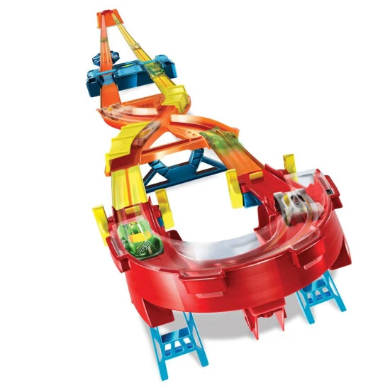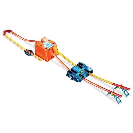– Enthält einen innovativen Doppelbeschleuniger und über 6 Meter Track sowie Teile für vierspurige Tracks und Stuntkonfigurationen, die mit dem Hot Wheels Race Portal (separat erhältlich) kompatibel sind.