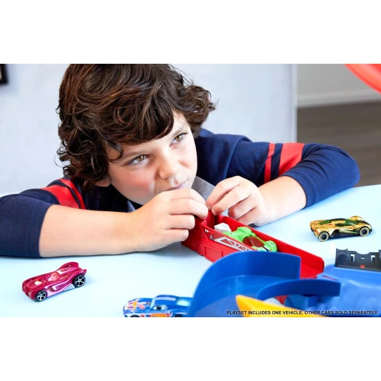 Hot Wheels lanceerbaan Ontsnap de Vulkaan Pas op, een vulkaanuitbarsting! Ontwijk het gevaar en breng je auto in veiligheid. Met deze interactieve racebaan van Hot Wheels heb je uren speelplezier! De baan is uitgerust met een gemotoriseerd “veegmechanisme” waarmee de auto’s van de baan naar de top van de vulkaan worden geduwd. Er zijn verschillende manieren om aan de lavastromen en valkuilen te ontsnappen, dus lanceer je auto en stunt over de baan om te ontsnappen aan de vuurspuwende vulkaan! Het mechanisme houdt het onvoorspelbaar en spannend. Een geweldige set boordevol actie, die kan worden gekoppeld aan andere Hot Wheels City sets. In de set wordt één Hot Wheels auto meegeleverd. Exclusief batterijen. Specificaties Geslacht: Junior Inclusief batterijen: Nee Kleur: Multicolor Leeftijd: 4-6 Jaar, Leeftijd, Leeftijd, Leeftijd Batterijen nodig: Ja Aandrijving: Elektrisch Materiaal: Kunststof, Materiaal