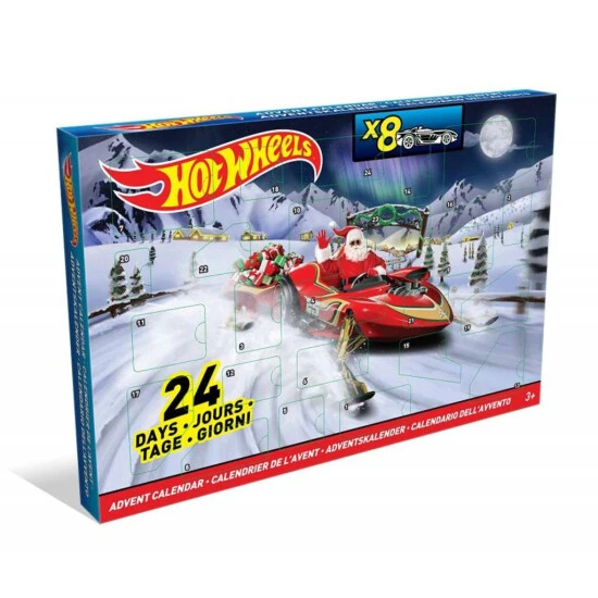 Der Hot Wheels Adventskalender 2014 von Mattel versüßt die Vorfreude auf Weihnachten. Hinter den 24 Türchen verbergen sich stylische Hot Wheels Überraschungen. Unter anderem kleine vorweihnachtliche Geschenke im coolen Renndesign. Jeder Tag hält eines von acht verschiedenen Hot-Wheels-Fahrzeugen, coole Aufkleber oder überraschende Zubehörteile bereit, die die Herzen der Motorsportfans höher schlagen lassen. Ein Muss für jeden kleinen Rennsportfan.